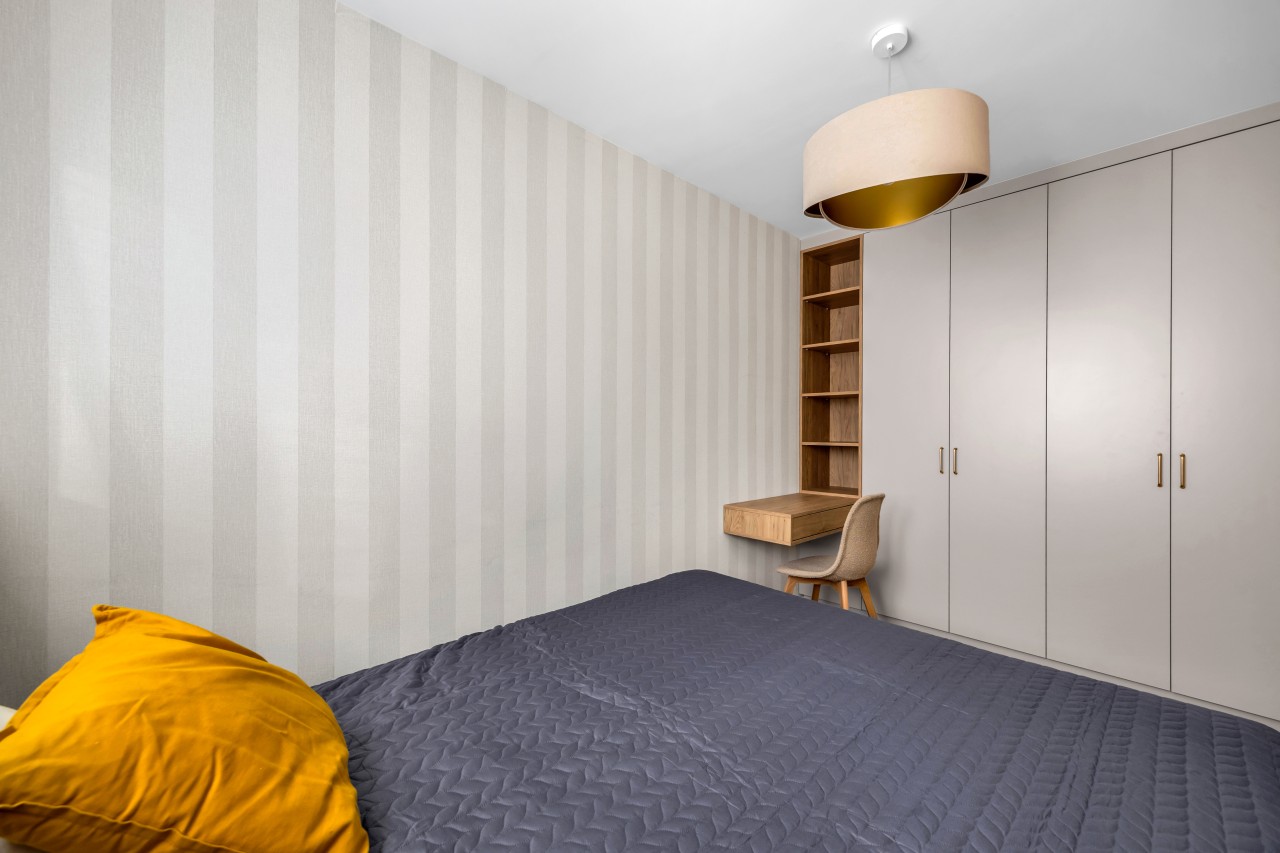 Na sprzedaż funkcjonalne i słoneczne mieszkanie dwupokojowe, zaprojektowane z myślą o maksymalnym wykorzystaniu przestrzeni. Lokal składa się z przytulnej sypialni, salonu z aneksem kuchennym oraz łazienki. Wnętrze zostało starannie wykończone i oferuje dużą ilość miejsca do przechowywania dzięki licznym szafom i zabudowom, co znacząco podnosi komfort codziennego użytkowania. Dodatkowym atutem jest praktyczna toaletka przy łazience. W sypialni znajduje się wygodne łóżko o wymiarach 160x200 cm z pojemnikiem, biurko oraz szafy w zabudowie. Mieszkanie jest w pełni wyposażone w sprzęty AGD, takie jak zmywarka, lodówka, płyta indukcyjna, piekarnik oraz pralka, co pozwala na natychmiastowe zamieszkanie bez dodatkowych nakładów. Drewniana podłoga nadaje wnętrzu wyjątkowego charakteru. Położenie na 4. piętrze zapewnia dobre doświetlenie oraz poczucie prywatności. Do lokalu przynależy również piwnica. To idealna propozycja dla singla, pary lub jako inwestycja pod wynajem.