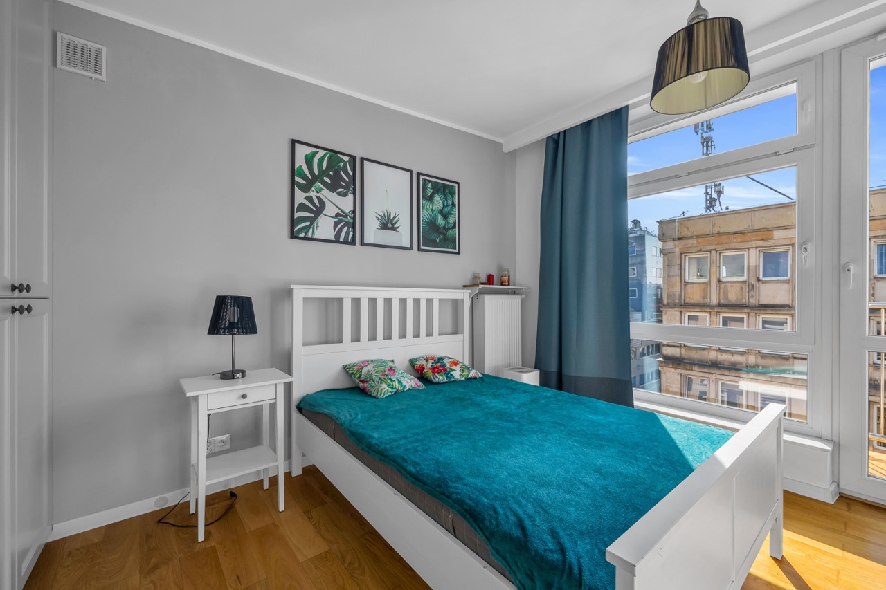 Dodatkowym atutem są dwa balkony, które stanowią idealne miejsce na poranną kawę czy relaks z widokiem na miasto.
